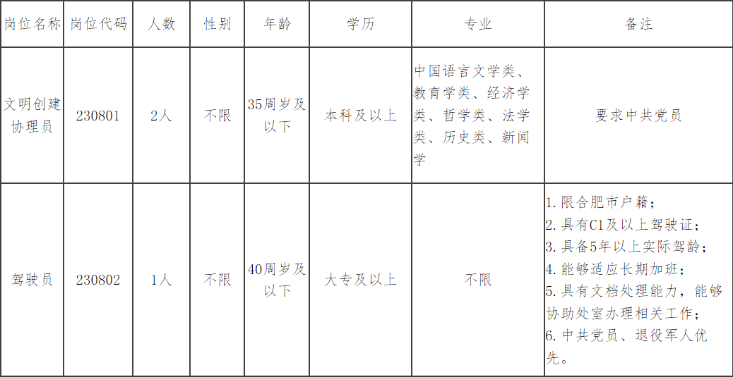 此次招聘,文明创建协理员岗位实行笔试和面试结合形式,驾驶员岗位实行面试(技能测试)的形式进行。